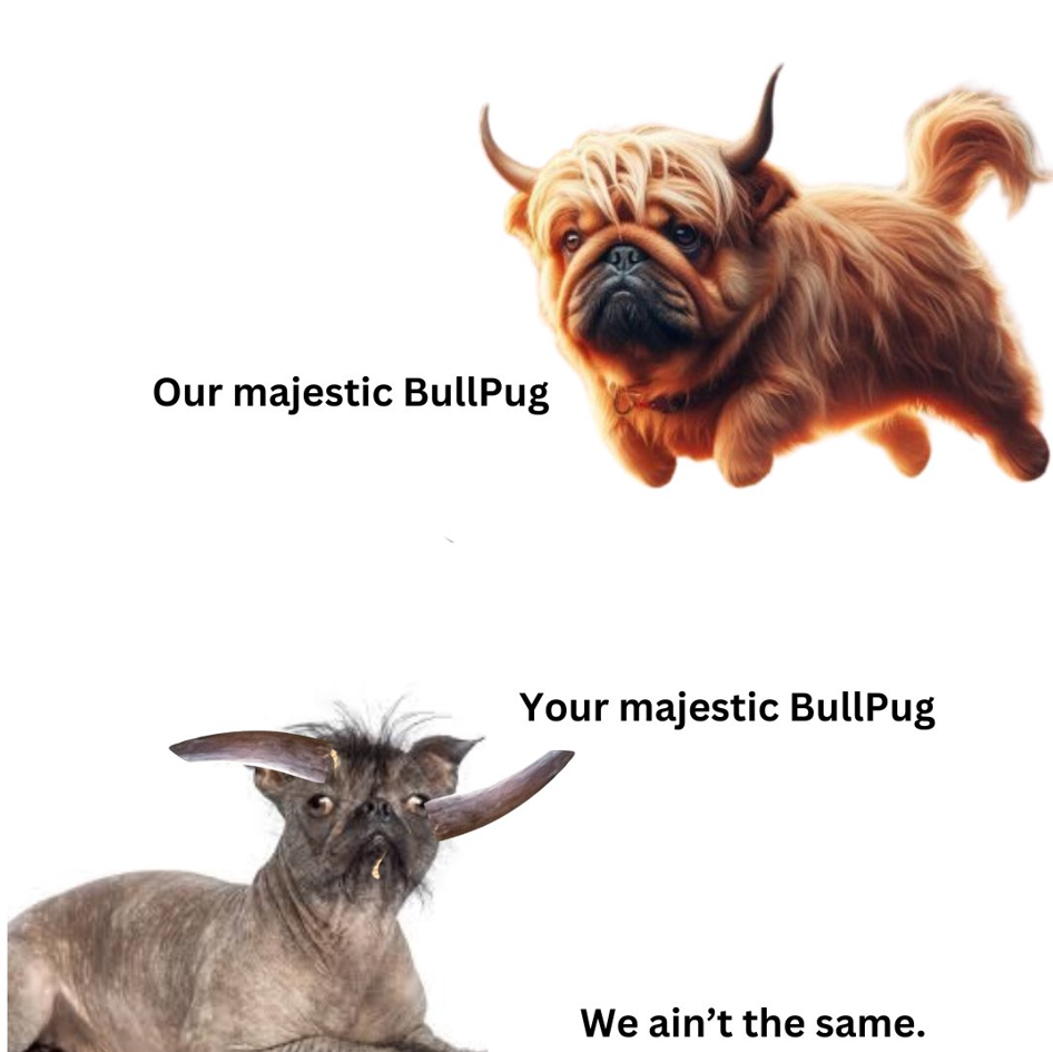 Meet Bullpug, the fearless and loyal guardian of the Memecoin Universe. Legend has it that Bullpug was born from a cosmic mix-up when the stars of the Bull constellation collided with the energy of a pug-shaped nebula